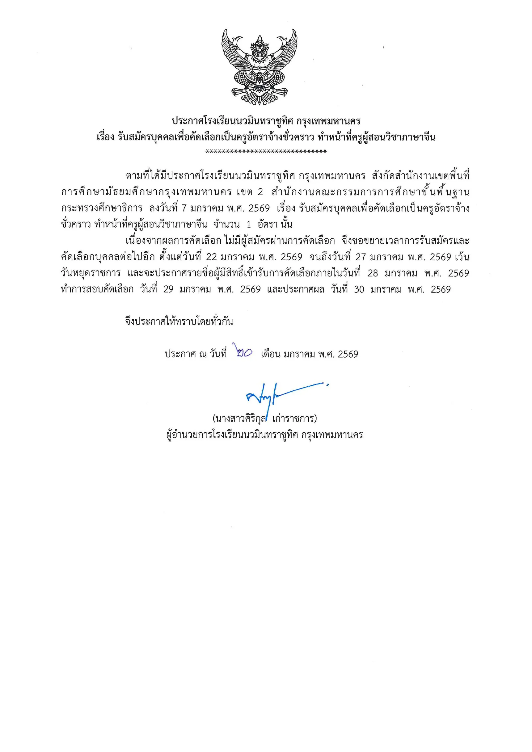 ประกาศ รับสมัครบุคคลเพื่อคัดเลือกเป็นลูกจ้างชั่วคราว ทำหน้าที่ครูผู้สอน วิชา ภาษาจีน