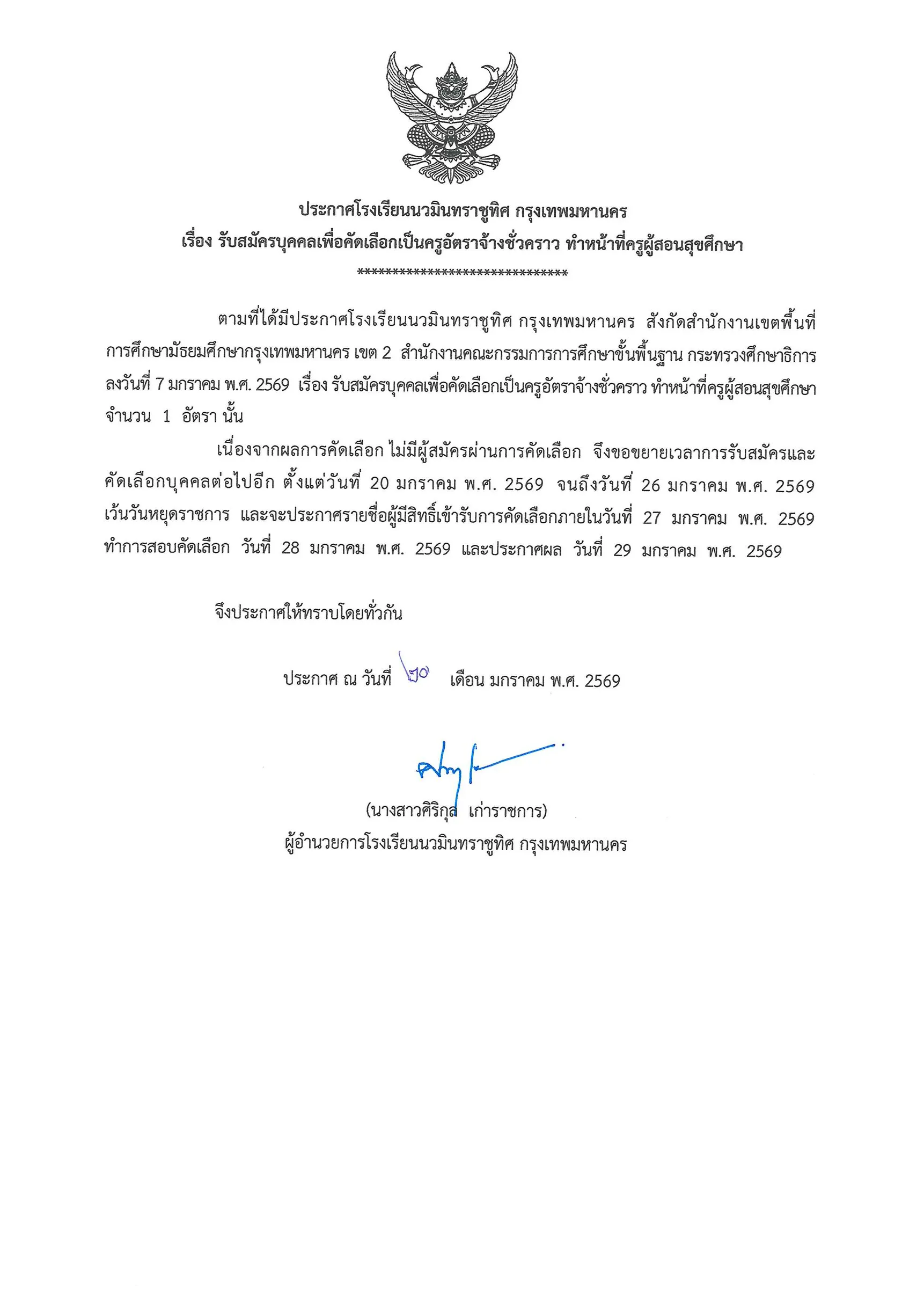 ประกาศ รับสมัครบุคคลเพื่อคัดเลือกเป็นลูกจ้างชั่วคราว ทำหน้าที่ครูผู้สอน วิชา สุขศึกษา