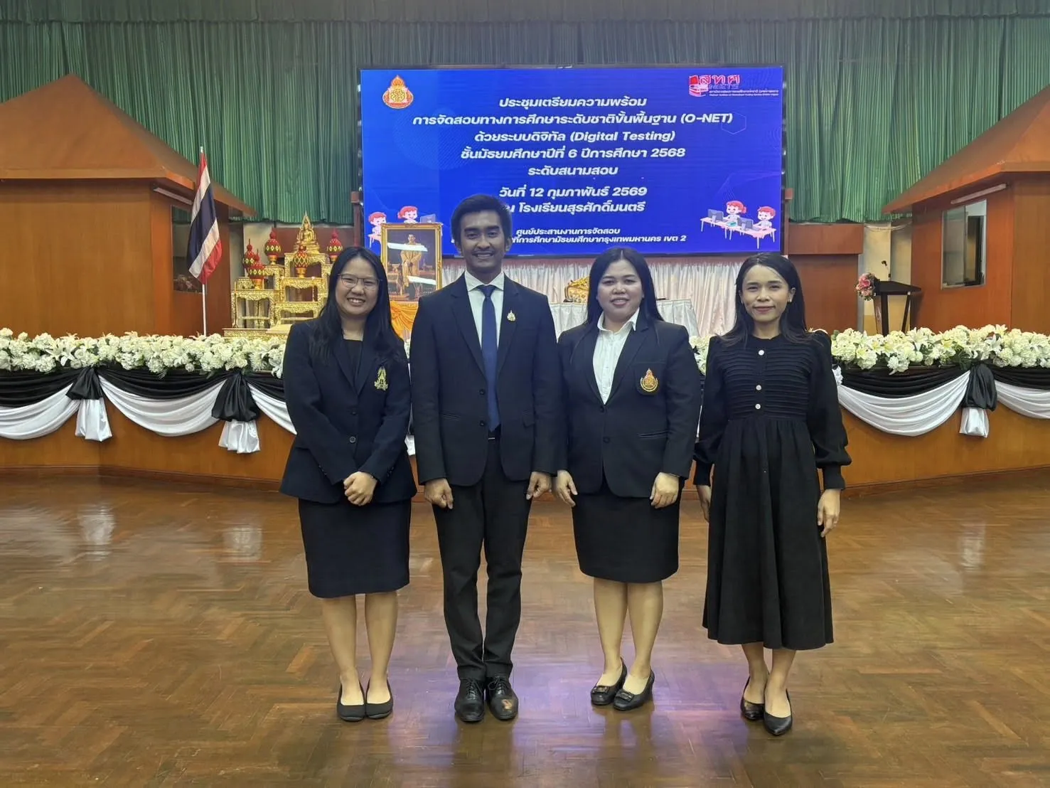 วันพฤหัสบดีที่ 12 กุมภาพันธ์ 2569 นางสาวศิริกุล เก่าราชการ ผู้อำนวยการโรงเรียนนวมินทราชูทิศ กรุงเทพมหานคร มอบหมายให้นางสาวณักษ์ลภัส ปราบพาล รองผู้อำนวยการกลุ่มบริหารวิชาการ และนางสาวโสพนา เอี่ยมขจรศิริ ตัวแทนครูฝ่ายงานทะเบียน–วัดผล เข้าร่วมการประชุมเตรียมความพร้อมการจัดสอบทางการศึกษาระดับชาติขั้นพื้นฐาน  (O - NET) ด้วยระบบดิจิทัล (Digital Testing) ชั้นมัธยมศึกษาปีที่ 6 ปีการศึกษา 2568 ในระดับสนามสอบ เพื่อชี้แจงแนวทางขั้นตอนการดำเนินงาน บทบาทหน้าที่ของคณะกรรมการประจำสนามสอบ ตลอดจนมาตรการกำกับดูแลการสอบให้เป็นไปด้วยความเรียบร้อย โปร่งใส และได้มาตรฐานตามที่หน่วยงานต้นสังกัดกำหนด โดยการประชุมดังกล่าวจัดขึ้น ณ โรงเรียนสุรศักดิ์มนตรี ทั้งนี้ เพื่อให้โรงเรียนนวมินทราชูทิศ กรุงเทพมหานคร เตรียมความพร้อมด้านการบริหารจัดการและระบบเทคโนโลยีในการดำเนินการสอบรูปแบบดิจิทัลให้เป็นไปอย่างมีประสิทธิภาพและเกิดประโยชน์สูงสุดต่อนักเรียนผู้เข้าสอบต่อไป