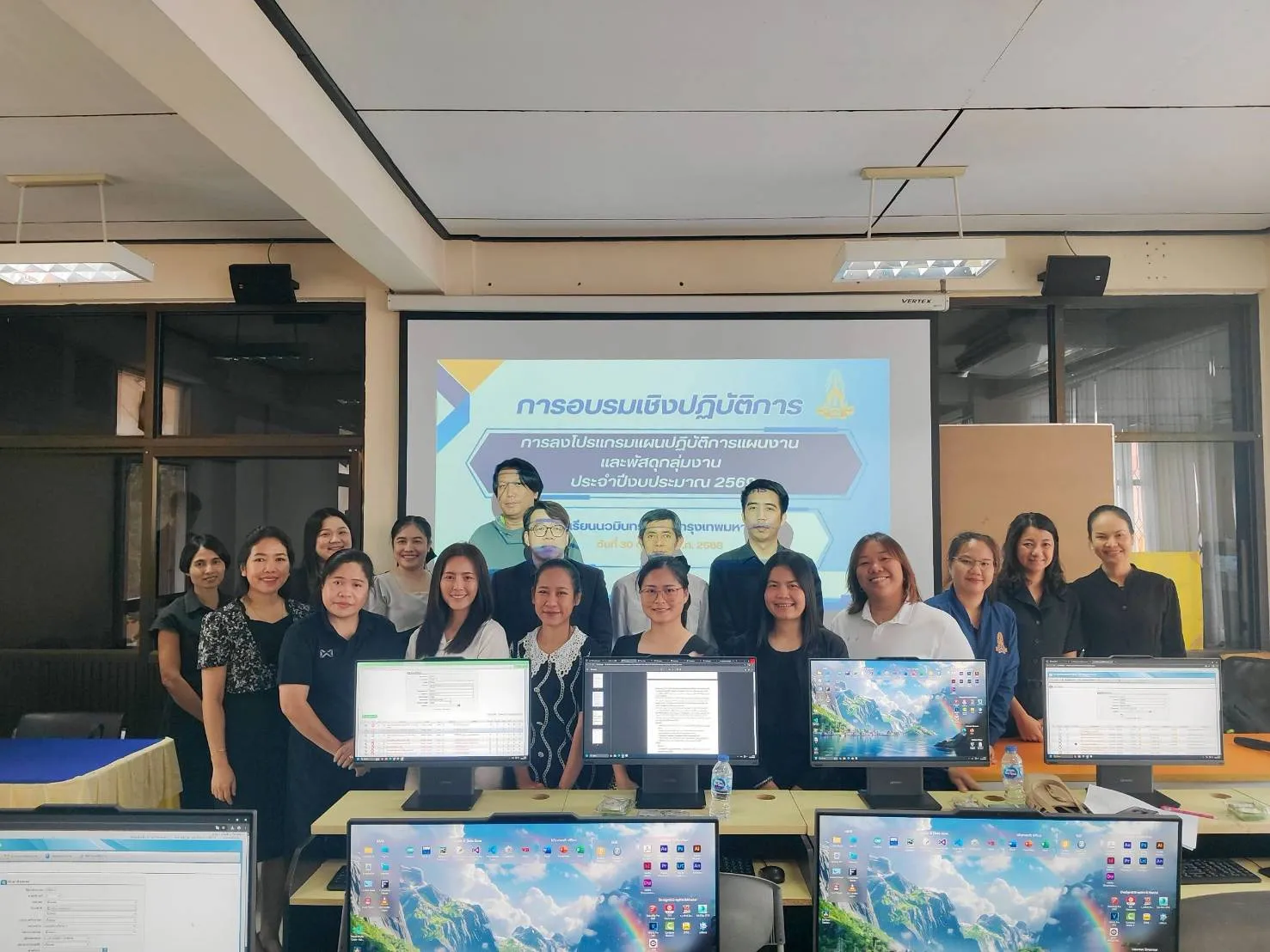 วันพฤหัสบดีที่ 30 ตุลาคม พ.ศ. 2568 นางสาวศิริกุล เก่าราชการ ผู้อำนวยการโรงเรียนนวมินทราชูทิศ กรุงเทพมหานคร มอบหมายให้นายเทิดพงษ์ ศรีวิเศษ รองผู้อำนวยการโรงเรียน เป็นประธานในการอบรมเชิงปฏิบัติการ การลงโปรแกรมแผนปฏิบัติการแผนงานและพัสดุกลุ่มงาน พร้อมด้วยคณะผู้บริหารและคณะครูเข้าร่วมอบรม โดยมีนางศศิพิมพ์ เย็นเพ็ชร หัวหน้างานนโยบายและแผนงาน กล่าวรายงานวัตถุประสงค์ในการจัดกิจกรรมฯ เพื่อพัฒนาความรู้และทักษะของครูและบุคลากร ในการใช้โปรแกรมบริหารแผนงานและพัสดุอย่างมีประสิทธิภาพ สร้างระบบการทำงานที่ถูกต้อง โปร่งใส และตรวจสอบได้ ณ ห้องปฏิบัติการคอมพิวเตอร์ (ห้อง 1304) โรงเรียนนวมินทราชูทิศ กรุงเทพมหานคร