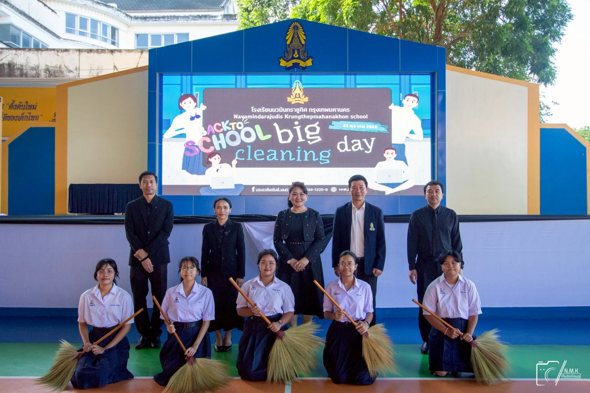 วันศุกร์ที่ 31 ตุลาคม พ.ศ. 2568 นางสาวศิริกุล เก่าราชการ ผู้อำนวยการโรงเรียนนวมินทราชูทิศ กรุงเทพมหานคร พบปะและให้โอวาทแก่นักเรียนช่วงกิจกรรมหน้าเสาธง ซึ่งเป็นวันแรกของการเปิดภาคเรียนที่ 2 ปีการศึกษา 2568 ในโอกาสนี้ผู้อำนวยการโรงเรียน พร้อมด้วยคณะผู้บริหาร คณะครูและบุคลากร นำนักเรียนโรงเรียนนวมินทราชูทิศ กรุงเทพมหานคร ทุกระดับชั้น เข้าร่วมกิจกรรม Big Cleaning Day เพื่อเตรียมความพร้อมและสร้างความปลอดภัยของโรงเรียน โดยการทำความสะอาดบริเวณอาคาร ห้องเรียน โต๊ะ เก้าอี้ รวมถึงพื้นผิวสัมผัสต่าง ๆ ในห้องเรียน เพื่อเป็นการสร้างความมั่นใจให้กับคณะครู นักเรียน และผู้ปกครอง ในการเปิดเรียนภาคเรียนที่ 2 ประจำปีการศึกษา 2568