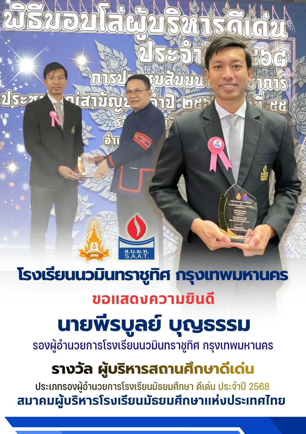 รางวัลผู้บริหารสถานศึกษาดีเด่น ประเภทรองผู้อำนวยการโรงเรียนมัธยมศึกษาดีเด่น ประจำปี 2568