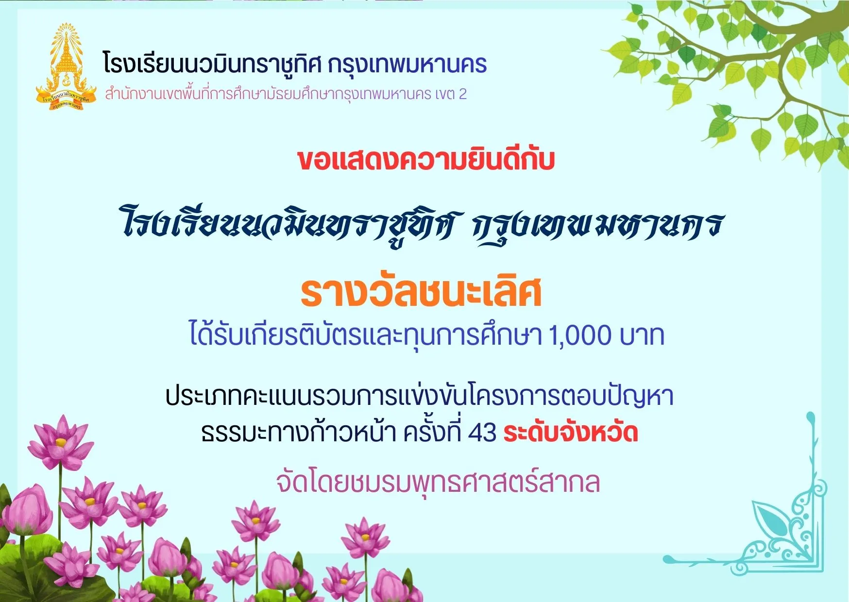 การแข่งขันโครงการตอบปัญหา “ธรรมะทางก้าวหน้า” ครั้งที่ 43